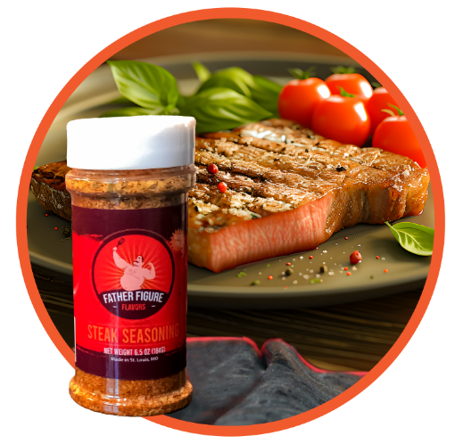 Father Figures Steak is a zealous combination of spices that will make every steak great. Apply this to your favorite cut of steak or vegetable and grill it.